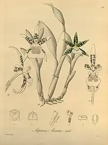 Aspasia lunata is a species of orchid, native to tropical South America, in the Brazilian southeast and south and reaching Bolivia and Paraguay, from 200–750 metres (660–2,460 ft) in elevation.