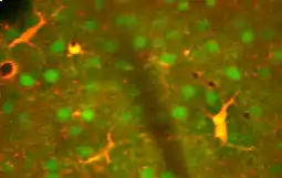 - ↑ Sofroniew MV (November 2014). "Astrogliosis". Cold Spring Harbor Perspectives in Biology. 7 (2): a020420. doi:10.1101/cshperspect.a020420. PMC 4315924. PMID 25380660.