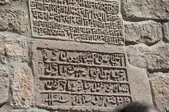 There are several inscriptions on the Ateshgah. They are all in either Sanskrit or Punjabi, with the exception of one Persian inscription that occurs below an accompanying Sanskrit invocation to Lord Ganesha and Jwala Ji.[24] Although the Persian inscription contains grammatical errors, both the inscriptions contain the same year date of 1745 Common Era (Samvat/संवत 1802/१८०२ and Hijri 1158/١١٥٨).[24][49] Taken as a set, the dates on the inscriptions range from Samvat 1725 to Samvat 1873, which corresponds to the period from 1668 CE to 1816 CE.[24] This, coupled with the assessment that the structure looks relatively new, has led some scholars to postulate the 17th century as its likely period of construction.[16][17][24] One press report asserts that local records exist that state that the structure was built by the Baku Hindu traders community around the time of the fall of the Shirvanshah dynasty and annexation by the Russian Empire following the Russo-Persian War (1722–1723).[50]