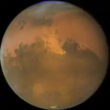 ![]() Image of Mars and its thin atmosphere, photographed by Viking 1 | |