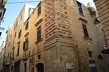 Side façade of Auberge d'Italie in Jean de Valette Square, which might have contained the main entrance prior to 1629