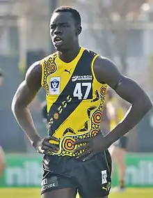 Kevin Sheedy predicted an African future for the AFL when he recruited Ethiopian Goaner Tutlan in 2004. The success of Majak Daw saw a rise in the popularity of AFL among South Sudanese migrants[1] which have attracted the attention of AFL recruiters in search for the combination of height and athleticism.[2] An increasing number of players descended from the Indigenous peoples of Africa have played professionally in the Australian Football League, holding African Australian identity.