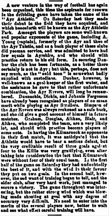 - ↑ The Ayr F.C. reserve side. "Athletic Gossip". Ayrshire Post: 5. 4 September 1891.