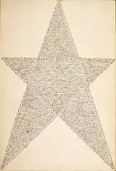 The works of the Báb have also excited scholarly interest and analysis. Elham Afnan describes the writings of the Báb as having "restructured the thoughts of their readers, so that they could break free from the chains of obsolete beliefs and inherited customs".[96] Jack McLean notes the novel symbolism of the Báb's works, observing that "The universe of the Báb's sacred writings is pervasively symbolic. Numbers, colors, minerals, liquids, the human body, social relationships, gestures, deeds, language (letters and words), and nature itself are all mirrors or signs that reflect the profounder reality of the names and attributes (asmá va sifát) of God".[97] Todd Lawson similarly identifies in the commentaries of the Báb an assertion of "the potential and ultimate meaningfulness of all created things, from the highest to the lowest."[98] The Báb's works are characterised by linguistic innovation, including many neologisms whenever He found existing theological terms inadequate.[95] Several scholars have identified the continual repetition of particular words or phrases of religious importance to be a distinct feature throughout the Bab's writings.[99] John Walbridge views the "unquestionably hypnotic" use of repetition in the Bab's Kitab-i-Panj Sha'n, where "the same evocative words are repeated ceaselessly" with gradual variations over time, as anticipating a minimalist aesthetic as well as possibly prefiguring the modernist style of Finnegans Wake.[100] The Báb himself categorised his writings into five modes: divine verses, prayers, commentaries, rational discourse — written in Arabic — and the Persian mode, which encompasses the previous four.[96] Baháʼí scholars have argued that there are commonalities between the Báb's writings and those of Western philosophers such as Hegel,[101] Kant[102] and James Joyce.[103][104]