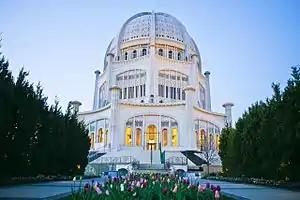 The oldest extant Baháʼí House of Worship stands in Wilmette, on the shore of Lake Michigan near Chicago.[29] It has received architectural awards.[6] In 1978, it was added to the United States National Register of Historic Places.[6][30] In 2007, the Baháʼí House of Worship was named one of the Seven Wonders of Illinois by the Illinois Bureau of Tourism.[31][32] The temple is visited by about 250,000 people every year.[33][29]