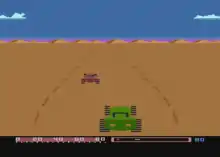 Baja Buggies is a desert-themed racing video game written by Dan Ugrin for the Atari 8-bit family.[1] It uses a third-person, 2.5D perspective. The game was originally developed and sold as Night Rally by Arcade Plus before the company folded, then it was revamped and became the first release from Gamestar.[2][3] Gamestar went on to publish a series of sports games for the Atari 8-bit and Commodore 64 before becoming a label of Activision.