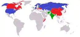 Countries in italics no longer compete at the World Championships.