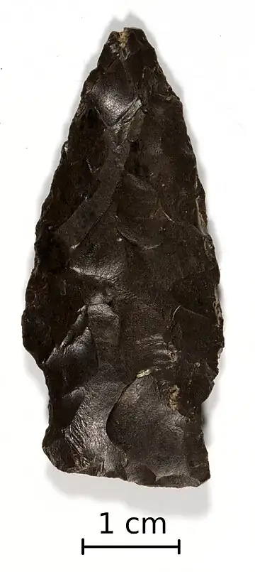 The Bare Island projectile point is a stone projectile point of prehistoric indigenous peoples of North America. It was named by Fred Kinsey in 1959 for examples recovered at the Kent-Halley site on Bare Island in Pennsylvania.