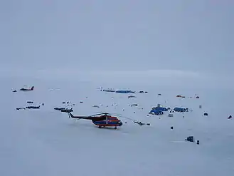 Ice Camp Barneo should not be confused with the sequential Soviet/Russian "North Pole" drifting ice stations established by the Russian Academy of Sciences Arctic and Antarctic Research Institute (AARI).