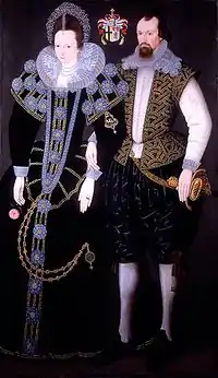 John Mohun, 1st Baron Mohun of Okehampton (1595-1641) was the son of Sir Reginald Mohun, 1st Baronet of Boconnoc in the County of Cornwall, in the Baronetage of England, which baronetcy had been created on 25 November 1611.[1] Sir Reginald Mohun subsequently sat as Member of Parliament for East Looe and Lostwithiel. In 1639, eleven years after his elevation to the peerage, Lord Mohun of Okehampton succeeded his father in the baronetcy. The 4th and last Baron was best known for his frequent participation in duels, which was the cause of his death, and for his reputation as a rake. The titles became extinct on his death on 15 November 1712.