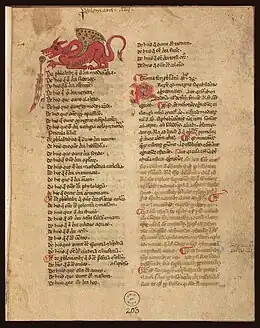 In a letter to the masters of the University of Paris, Manfred refers to his translators without naming them. Other than Bartholomew, only Stephen of Messina can be certainly associated with his court. Other translators who may have worked for Manfred include William of Luna, Joannes de Dumpno and the anonymous translator of the Tacuinum sanitatis.[4] It has been suggested, on account of his prominence among the identifiable translators of Manfred, that he was the head of the translation school.[5] For the same reason, a reference in Roger Bacon to "the translator of Manfred" is usually taken to refer to Bartholomew.[6]