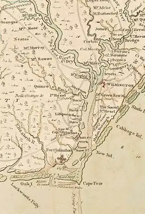 ![]() An 18th-century map of the Cape Fear River | |||||||