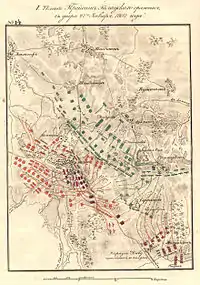- ↑ Chandler suggests that casualties may have been as high as 25,000 but concedes the actual number cannot be determined;[4] Franceschi gives 14,000;[5] Connelly suggests probably over 15,000.[6] Other sources suggest that their losses approached almost 30,000.[7][8][9] According to the estimates of the German historian Horst Schulz, the French lost 4,893 men killed, 23,598 wounded and 1,152 missed in action, which makes a total of 29,643.[10]