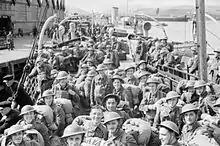Group I departed Bremerhaven on 6 April. It consisted of 10 German destroyers of the 1934A and 1936 classes Georg Thiele, Wolfgang Zenker, Bernd von Arnim, Erich Giese, Erich Koellner, Diether von Roeder, Hans Lüdemann, Hermann Künne, Wilhelm Heidkamp (flagship) and Anton Schmitt, commanded by Kommodore Friedrich Bonte. Each of the warships carried around 200 soldiers (a total of 1,900 mountain troops (Gebirgsjäger) from the 139th Mountain Regiment (Gebirgsjägerregiment) of the 3rd Mountain Division commanded by General Eduard Dietl).[5] The troop-carrying destroyers were escorted most of the way by the battlecruisers Scharnhorst and Gneisenau.[4]