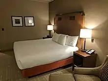 Bed rails are made of wood or metal and are attached to a headboard and footboard. Wooden slats are placed perpendicular to the bed rails to support the mattress/mattress box spring. Bed rails and frames are often attached to the bed post using knock-down fittings.[25][26] A knock-down fitting enables the bed to be easily dismantled for removal. Primary knock-down fittings for bed rails are as follows: