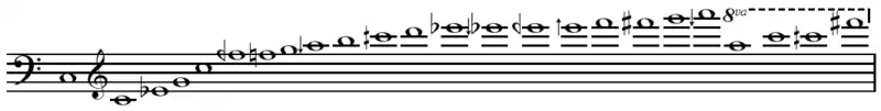 The bells of Marquis Yi—which were still fully playable after almost 2500 years—cover a range of slightly less than five octaves but thanks to their dual-tone capability, the set can sound a complete 12-tone scale—predating the development of the European 12-tone system by some 2000 years—and can play melodies in diatonic and pentatonic scales.[34]