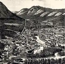 When English colonists came to America, Berlin was first granted on December 31, 1771, by Colonial Governor John Wentworth, as "Maynesborough" after Sir William Mayne.[9] But the grantees did not take up their claims, which disappeared with the Revolution. In 1802, Seth Eames and Gideon Tirrell were sent by the descendants of Mayne to explore and mark lots for settlers, and still no one came. Maynesborough was settled in 1823–1824 by William Sessions and his nephew, Cyrus Wheeler.[10] Both men were from Gilead, Maine. Farming was the first industry. With 65 inhabitants in 1829, the New England town was reincorporated on July 1 as Berlin with the help of Cyrus' father, Thomas Wheeler.[11]
