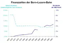 The entire share capital of the Bern-Lucerne Railway was lost when it went bankrupt in 1876, although a considerable amount of rent was paid to the canton of Bern from 1882 on.