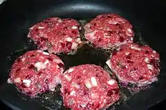 Biff à la Lindström is a Swedish dish made from onion, potato, red beet, capers, and ground beef, which is made into patties and fried.[1]