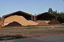 The by-products from the wood processing industry are called wood processing residues and consist of cut offs, shavings, sawdust, bark, and black liquor.[28] Wood processing residues have a total energy content of 5.5 EJ annually.[29] Wood pellets are mainly made from wood processing residues,[lower-alpha 17] and have a total energy content of 0.7 EJ.[lower-alpha 18] Wood chips are made from a combination of feedstocks,[30] and have a total energy content of 0.8 EJ.[lower-alpha 19]