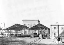 Print from a 19th-century guide book showing the 1840 hotel extension to the north of the terminus building