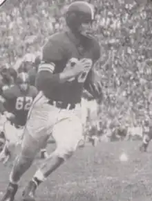 Captain Bob Carey advances the ball for #1 nationally ranked Michigan State vs. #7 Ohio State in Columbus on October 6, 1951. After mounting a late 4th Qtr. rally, MSU defeated the Buckeyes 24–20 to retain their position atop the national polls.