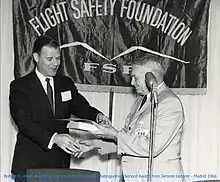 Allen seen accepting Flight Safety Foundation's Distinguished Service Award on behalf of the CAB in Madrid, 1966