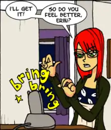 Allison stopped Bobbins in 2002, so he could focus on his new webcomic, titled Scary Go Round (SGR).[6] Most of the main characters followed him, and SGR, although originally intended to be a spin-off focusing on the minor characters Tessa Davies and Rachel Dukakis-Monteforte, eventually ended up with roughly the same cast as the end of Bobbins, though a number of new characters were introduced later.[7][8]