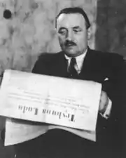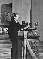 Bolesław Bierut ([bɔˈlɛswaf ˈbʲɛrut] ⓘ; 18 April 1892 – 12 March 1956) was a Polish communist activist and politician, leader of communist-ruled Poland from 1947 until 1956. He was President of the State National Council from 1944 to 1947, President of Poland from 1947 to 1952, General Secretary of the Central Committee of the Polish United Workers' Party from 1948 to 1956, and Prime Minister of Poland from 1952 to 1954. Bierut was a self-educated person. He implemented aspects of the Stalinist system in Poland.[1] Together with Władysław Gomułka, his main rival, Bierut is chiefly responsible for the historic changes that Poland underwent in the aftermath of World War II. Unlike any of his communist successors, Bierut led Poland until his death.
