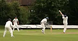 There is an unspoken agreement, particularly in the time before the widespread use of batting helmets, that fast bowlers will not bowl bouncers at each other, because less skilled batters are less likely to effectively defend and therefore more likely to be struck.[2] Breaking of this rule can lead to "bouncer wars" – that is, the targeted bowler engaging in retaliatory hostile short-pitched bowling at his opponent during the following innings.[3]