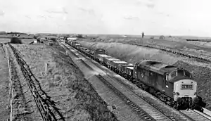 ![]() The site of the station, looking north towards Ferryhill, in 1970 | |