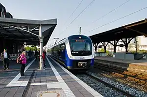 Brake (Unterweser) (German: Bahnhof Brake (Unterweser)) is a railway station located in Brake, Germany. The station is located on the Hude-Blexen railway. The train services are operated by NordWestBahn. The station has been part of the Bremen S-Bahn since December 2010.