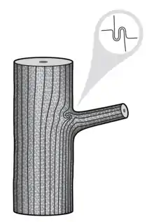 A common malformation of a branch attachment in a tree is the inclusion of bark within the join, commonly referred to as a 'bark inclusion' or 'included bark'. This malformation is known to weaken the connection of the branch to the rest of the tree's structure, as it acts to block the formation of the axillary wood at the branch attachment's apex.[5][6][7]