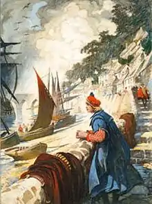 The Brandywine School was a style of illustration—as well as an artists colony in Wilmington, Delaware and in Chadds Ford, Pennsylvania, near the Brandywine River—both founded by artist Howard Pyle (1853–1911) at the end of the 19th century.[1] The works produced there were widely published in adventure novels, magazines, and romances in the early 20th century. Pyle’s teachings would influence such notable illustrators as N.C. Wyeth, Maxfield Parrish, Harvey Dunn, and Norman Rockwell.[2] Pyle himself would come to be known as the "Father of American Illustration."[3] Many works related to the Brandywine School may be seen at the Brandywine River Museum of Art, in Chadds Ford.