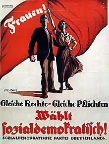 Women delegates, of which there was just three on the council, protested the compromising of previous socialist commitments to gender equality.[9] They noted that the council had introduced unemployment benefits at only one third the rate for women as for men, and that as members of the Council their own compensation was a third less than that of their male colleagues. Henke's mistrust of women may have proved self-fulfilling. Disappointed in the council, women struggling for recognition were drawn to the electoral equality accepted by the parties endorsing the national assembly.[11]