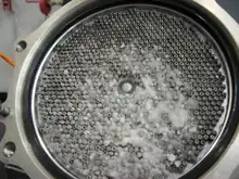 Laboratory duplication of ice crystals clogging the FOHE on a Rolls-Royce Trent 800 series engine taken from the NTSB report[7] addressing the incidents of BA Flight 38 and DL Flight 18.