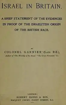 Israel in Britain, an 1890 book advocating British Israelism. According to the doctrine, the Ten Lost tribes of Israel found their way to Western Europe and Britain, becoming the ancestors of the British, the English and related peoples.
