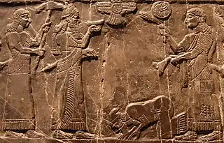 Jehu kneeling at the feet of Shalmaneser III on the Black Obelisk.