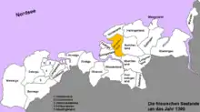 Until the early Middle Ages the Brokmerland was largely uninhabited and provided a natural boundary between the Federgau and the Emsgau on one side and the provinces of Norditi (Norderland) and Östringen on the other side. This boundary also played a role in church history because it was the dividing line between the Diocese of Münster (Federgau and Emsgau) and the Archdiocese of Bremen (Norderland and Östringen).