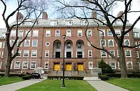 The land was bought for $1.6 million ($34,300,000 today),[15] and construction allotment was $5 million ($107,000,000 today).[11] Construction began in 1935.[16] At the groundbreaking ceremony was Mayor Fiorello La Guardia and Brooklyn Borough President Raymond Ingersoll.[11] In 1936, United States President Franklin D. Roosevelt visited and laid the gymnasium's cornerstone.[17][11] The new campus opened for the fall 1937 semester.[18][19] In the 1940s, Boylan, Ingersoll, Roosevelt and La Guardia each became namesake of a campus building.[20][21][22]