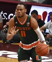 As a sophomore with the Miami Hurricanes, Brown averaged 11.4 points, 7.1 rebounds, and four assists per game and shot 27 percent from 3-point range.[7] He only played 19 games and missed the postseason with a left foot injury that required surgery. After the season Brown declared for the 2018 NBA draft but did not hire an agent, thereby allowing for the possibility of returning to college.[8] He ultimately decided to stay in the draft.[9]