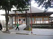 Initially immigrants intended to stay in Brazil for a brief period to earn money and then return to Japan.[8] There was little impetus to create Buddhist institutions, and the lack of temples and monks meant that ceremonies were undertaken informally within the community.[9] The first Buddhist institution in Brazil, the Taissenji temple, was founded by Reverend Tomojiro Ibaragi in Guaiçara in 1936. This was followed by temples in Presidente Prudente and Moji das Cruzes in the 1940s.[10]