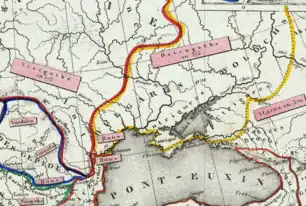 Map made by Auguste Dufour of the late 5th century. The Wolochi people are in the yellow-bordered territory.