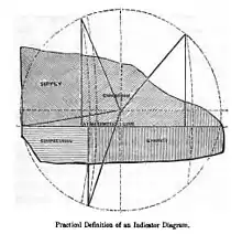 A detailed and influential treatment of the indicator within the framework of a newly developing 'engineering science' was given by W. J. Macquorn Rankine, in his A Manual of the Steam Engine (1859). Rankine not only reconceptualized the indicator diagram as what he called the 'diagram of energy', but also offered a substantial scientific account of how departures of real indicator diagrams from the ideal could be linked to operating characteristics of engines and of the indicator itself.[14]