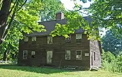 The historic district is linear, extending from a farmstead on the east side of Locust Street a short way south of the main intersection to a group of three 18th-century houses on the west side of Harmony Hill Road north of the junction. The district's properties are well spaced, and a range in sizes up to 20 acres (8.1 ha). The district as a whole is 103 acres (42 ha) in size. Houses are typically 2-1/2 stories in height, and of wood frame construction. The oldest is that of Jonathan Brace, built about 1730; other houses included two that have been converted from 19th-century barns, and one that was adapted from the 18th-century school building in the 19th century. Two 18th-century houses built by Abraham Catlin's son Abijah define the main intersection.[2]