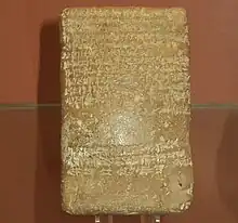 Burna-Buriaš II, rendered in cuneiform as Bur-na- or Bur-ra-Bu-ri-ia-aš in royal inscriptions and letters, and meaning servant or protégé of the Lord of the lands in the Kassite language, where Buriaš (𒀭𒁍𒊑𒅀𒀾, dbu-ri-ia-aš₂) is a Kassite storm god possibly corresponding to the Greek Boreas,[2] was a king in the Kassite dynasty of Babylon, in a kingdom contemporarily called Karduniaš, ruling ca. 1359–1333 BC,[3] where the Short and Middle chronologies have converged. Recorded as the 19th King to ascend the Kassite throne, he succeeded Kadašman-Enlil I, who was likely his father, and ruled for 27 years. He was a contemporary of the Egyptian Pharaohs Amenhotep III and Akhenaten. The proverb "the time of checking the books is the shepherds' ordeal" was attributed to him in a letter to the later king Esarhaddon from his agent Mar-Issar.[4]