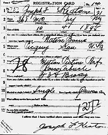 Keaton served in the American Expeditionary Forces in France with the United States Army's 40th Infantry Division during World War I. His unit remained intact and was not broken up to provide replacements, as happened to some other late-arriving divisions. During his time in uniform, he developed an ear infection that permanently impaired his hearing.[25][26]