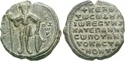 Although Emperor Constantine VII Porphyrogennetos (r. 913–959) mentions that before its elevation to a theme, the region was an "unnamed kleisoura", there is evidence of much earlier administrative structures than that.[4] A seal of a "spatharios and strategos of Mesopotamia" has been dated to c. 810, perhaps indicating the existence of a first short-lived theme there, and a seal of a tourmarches with the Armenian name Mousilikes, is tentatively dated to c. 870.[5]