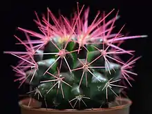 The first known collection of cacti was collected in the second half of the 16th century by the pharmacist Morgan in London. Popularity of these plants constantly grew, which was also facilitated by the biological characteristics of many cacti – tolerance of infrequent watering[4] and dry air (the latter is essential for room culture), and easy vegetative reproduction. Also, indoor types of cacti (in particular Rebutia) can be moved in pots to the garden during summer.[5] In botanical gardens of many European countries as well as in private greenhouses, significant collections have been accumulated.
