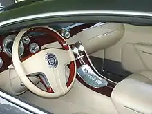The car referenced the Cadillac V-16 of the 1930s. The actual design of the car was a combination of Cadillac's current "Art and Science" design theme and 1967 Cadillac Eldorado cues. Additional original design elements were provided by an in-house design competition led by GM Vice President Bob Lutz. The Sixteen has the Cadillac logo carved out of solid crystal on the steering wheel and a Bulgari clock on the dashboard.